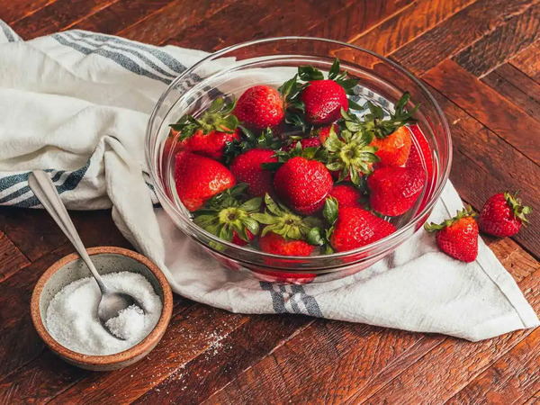 Dâu tây chứa enzyme malic acid, có tác dụng tẩy trắng tự nhiên, khi kết hợp với baking soda sẽ tạo thành hỗn hợp có khả năng loại bỏ vết ố và làm sáng răng. Bạn có thể nghiền nát một quả dâu tây rồi trộn với một ít baking soda, sau đó thoa hỗn hợp này lên răng và để trong vài phút. Sau đó, đánh răng lại với nước sạch để loại bỏ mảng bám.
